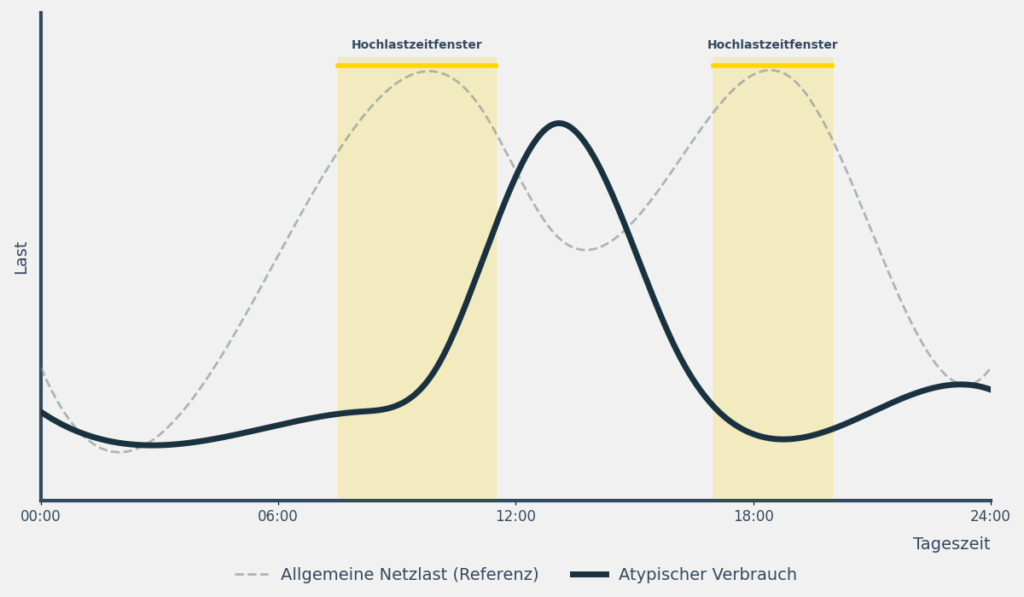 Diese technologische Steuerung bildet die Grundlage für die atypische Netznutzung gemäß § 19 Abs. 2 StromNEV, bei der die eigene Jahreshöchstlast vorhersehbar und erheblich von der zeitgleichen Jahreshöchstlast aller Entnahmen abweicht. In diesem Fall sind Netzbetreiber verpflichtet, ein individuelles Netzentgelt anzubieten, welches das netzdienliche Nutzungsverhalten angemessen berücksichtigt und die Kosten auf bis zu 20 % des regulären Netzentgeltes reduzieren kann.